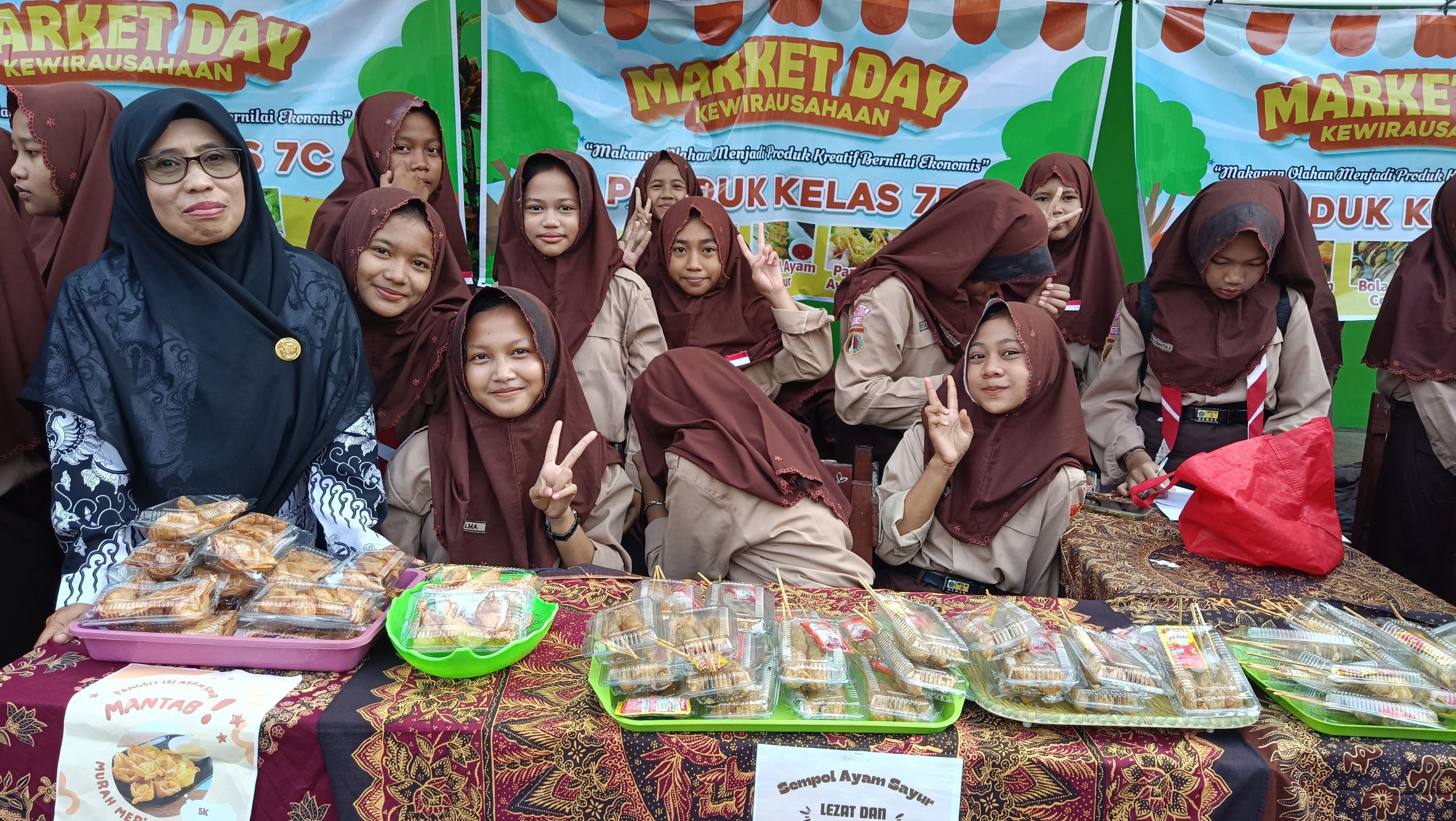 Dan pada hari ini, MTs Negeri 5 Demak telah sukses menyelenggarakan Marketday yang merupakan puncak dari proyek kewirausahaan siswa kelas VII dan VIII. Marketday resmi dibuka setelah dilaksanakannya pemotongan pita oleh bapak Kepala Madrasah Heru Sugianto dan didampingi oleh panitia P5RA. Kegiatan yang berlangsung meriah ini menampilkan berbagai produk kreatif hasil karya siswa, mulai dari olahan makanan berbahan ayam, umbi-umbian, hingga minuman sehat dari bahan alami yang tentunya sesuai dengan selera masa kini.